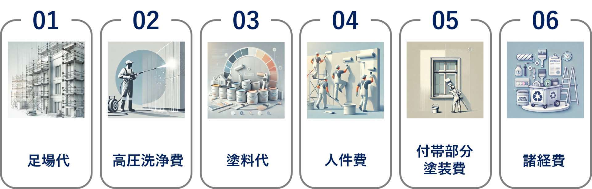 外壁塗装の費用には、以下の項目が含まれます。